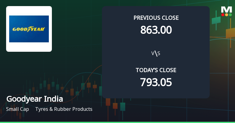 2026-02-05 19:33:05Goodyear India Ltd., the Indian subsidiary of the global tyre giant, reported net profit of ₹13.07 crores for Q3 FY26 (October-December 2025), reflecting a decline of 7.37% quarter-on-quarter and a steep 16.98% year-on-year contraction. With a market capitalisation of ₹1,815.00 crores, the small-cap tyre manufacturer faces mounting challenges as sales volumes decline and margins compress across the board. The stock has reacted negatively to the broader trend, trading at ₹793.05 on February 05, 2026, down 25.95% from its 52-week high of ₹1,071.00.