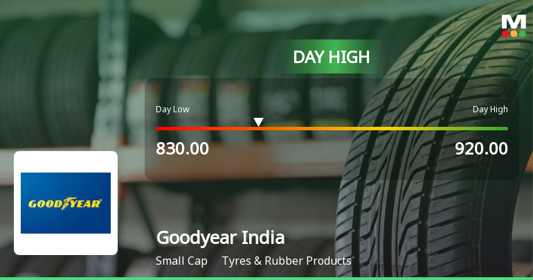 Goodyear India Ltd opened the trading session with a notable gap up of 13.49%, signalling strong buying interest from the outset. The stock reached an intraday high of ₹920, marking a 16.01% surge before settling at ₹843.70. This wide trading range of ₹90 and an intraday volatility of 5.14% reflect heightened market activity and investor enthusiasm. The stock outperformed its sector, Tyres & Allied, which itself gained 3.04% on the day, underscoring a favourable industry environment that buoyed Goodyear’s shares.