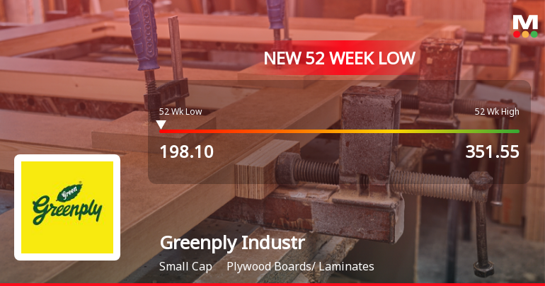 "description": "Greenply Industries Ltd has touched a fresh 52-week low of Rs.198.1 today, marking a significant milestone in its ongoing decline. The stock has underperformed its sector and broader market indices, reflecting a challenging period for the plywood boards and laminates company."