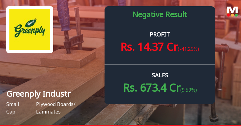 2026-02-04 17:47:07Greenply Industries Ltd., one of India's leading manufacturers of plywood and medium-density fibreboard (MDF) products, reported a challenging third quarter for FY2026, with consolidated net profit declining 41.25% year-on-year to ₹14.37 crores despite revenue growth of 9.59%. The results, which fell significantly short of market expectations, triggered a sharp 5.32% decline in the stock price to ₹223.25 on February 4, 2026, extending the company's underperformance streak that has seen shares tumble 25.36% over the past year.