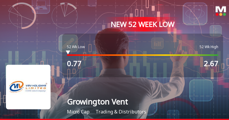 Growington Ventures India Hits 52-Week Low at Rs.0.77 Amid Market Pressure