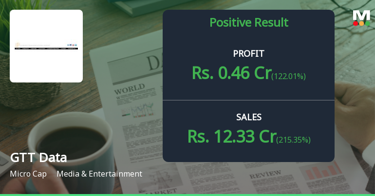 2026-02-12 09:33:37GTT Data Solutions Ltd., formerly Cinerad Communications Limited, reported a dramatic revenue acceleration in Q3 FY26 whilst continuing to bleed red ink at the bottom line. The micro-cap media and entertainment company posted consolidated net losses of ₹1.94 crores for the quarter ended December 2025, representing an 83.02% improvement year-on-year but a sequential deterioration of 84.76% from Q2 FY26. Despite net sales surging 818.30% year-on-year to ₹42.15 crores, the company's inability to translate topline growth into profitability remains a critical concern for investors.