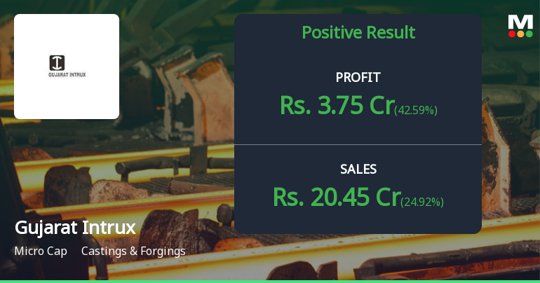 2026-01-29 15:04:07Gujarat Intrux Limited, a micro-cap manufacturer of stainless steel and alloy steel castings for the valve industry, reported a robust 34.81% quarter-on-quarter surge in net profit to ₹2.63 crores for Q2 FY26, despite revenue remaining virtually flat. The company's shares responded positively, trading at ₹450.00 as of January 29, 2026, up 6.26% from the previous close, reflecting investor appreciation of the margin improvement story. With a modest market capitalisation of ₹154.59 crores, the Rajkot-based foundry operator demonstrated operational efficiency gains that more than offset the stagnation in top-line growth.
