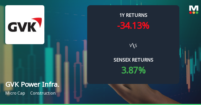 GVK Power & Infrastructure’s share price has been on a downward trajectory, falling by 5.42% over the past week, in stark contrast to the Sensex’s marginal gain of 0.02% during the same period. Over the last month, the stock declined by 1.26%, while the Sensex rose by 0.14%. The divergence is even more pronounced on a year-to-date basis, with GVK Power & Infrastructure plunging 35.39%, whereas the Sensex has gained 8.37%. Over the last year, the stock has lost 37.07%, while the benchmark index increased by 3.59%. These figures highlight the stock’s sustained underperformance relative to the broader market.