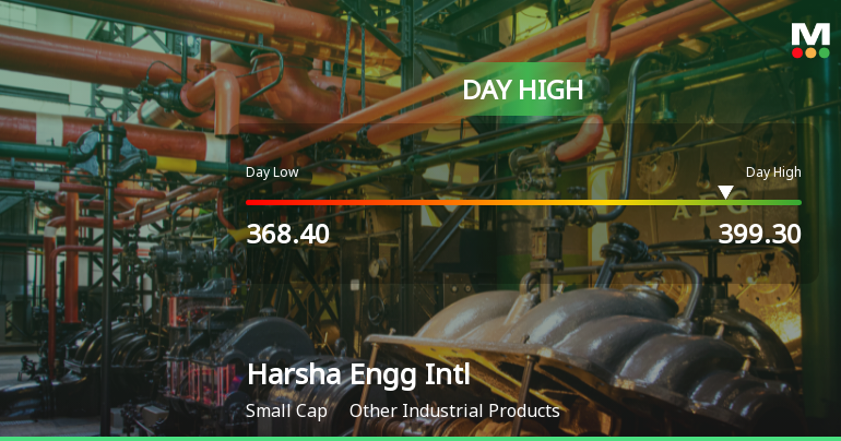 2026-02-03 15:01:29Harsha Engineers International Ltd demonstrated robust intraday strength on 3 Feb 2026, surging to an intraday high of Rs 399.3, marking an 8.4% rise and closing the day with a notable 7.23% gain. This performance outpaced both its sector and the broader market, reflecting significant trading momentum.