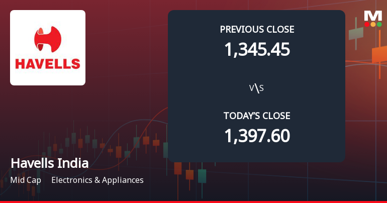 Havells India’s stock has been under pressure for the past four consecutive days, accumulating a loss of 6.98% over this period. Despite outperforming its sector by 0.72% on the day, the stock opened with a gap down of 2%, signalling investor caution. The intraday low touched ₹1,315, marking a 2.97% decline from the previous close. Notably, the stock is trading below all key moving averages, including the 5-day, 20-day, 50-day, 100-day, and 200-day averages, indicating a bearish technical trend. The broader cable sector also experienced a decline of 3.49%, suggesting sector-wide headwinds.