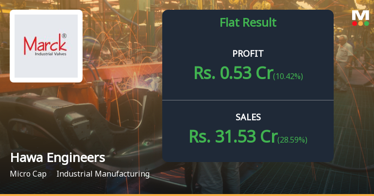 2026-01-10 16:01:49Hawa Engineers Ltd., an Ahmedabad-based industrial valve manufacturer, reported a challenging Q2 FY26 performance with net profit declining to ₹0.53 crores, marking a sequential improvement of 10.42% quarter-on-quarter but a concerning 43.62% decline year-on-year. The micro-cap company, with a market capitalisation of ₹35.00 crores, continues to face significant operational headwinds as revenue contracted 10.83% YoY to ₹31.53 crores, whilst margins remained under pressure despite modest sequential recovery.