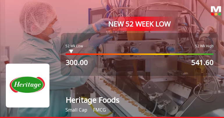 Heritage Foods Ltd Falls to 52-Week Low of Rs.300 Amidst Continued Downtrend