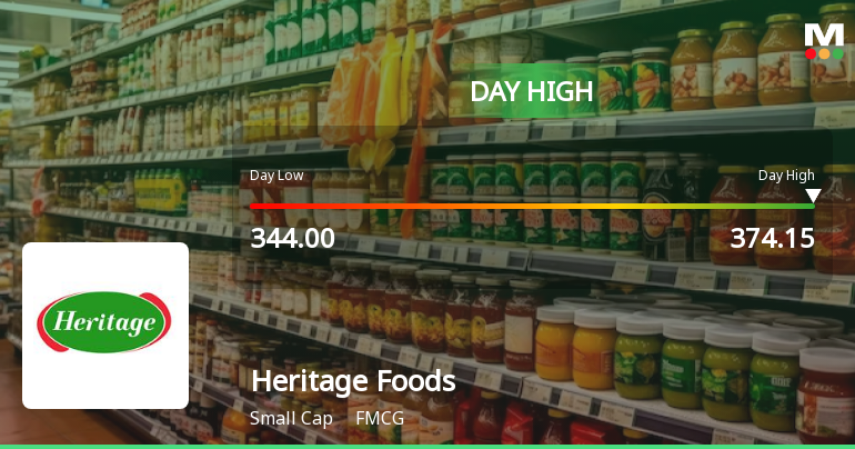 2026-02-04 14:47:15Heritage Foods Ltd demonstrated robust intraday performance on 4 February 2026, surging to a day’s high of Rs 373.95, marking a 7.26% increase. The stock outperformed its FMCG sector peers and the broader market, reflecting notable trading momentum amid a volatile market backdrop.