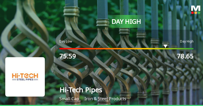2026-02-03 11:07:10Hi-Tech Pipes Ltd recorded a robust intraday performance on 3 Feb 2026, surging to a day’s high of Rs 78.65, marking a 7.53% increase from its previous close. The stock outpaced its sector and broader market indices, reflecting notable trading momentum amid mixed market conditions.