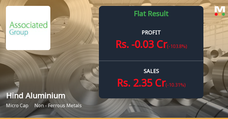 2026-02-13 23:13:51Hind Aluminium Industries Ltd. reported a consolidated net loss of ₹0.03 crores for Q3 FY26, marking a sharp reversal from the ₹0.79 crores profit recorded in Q2 FY26. The micro-cap non-ferrous metals manufacturer continues to grapple with persistent operational challenges, reflected in negative operating margins and declining sequential revenue despite strong year-on-year growth comparisons against an extremely weak base.