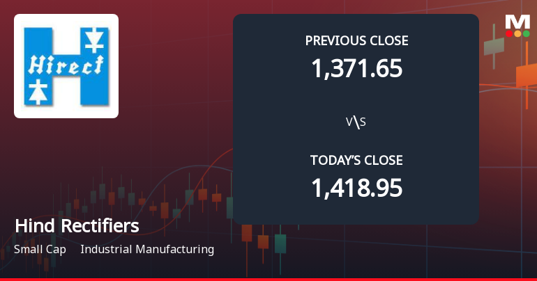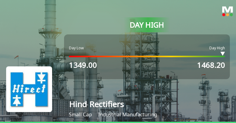 2026-03-06 11:30:51Hind Rectifiers Ltd demonstrated robust intraday strength on 6 Mar 2026, surging 7.2% to touch a day’s high of Rs 1,455, significantly outperforming the broader Sensex which declined by 0.71% amid a negative market mood.