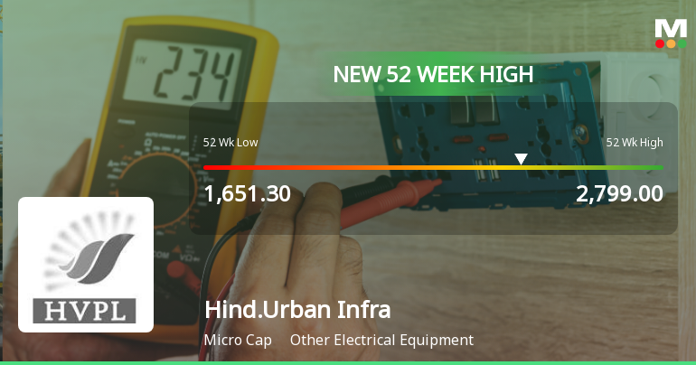 2026-02-17 10:35:08Hindusthan Urban Infrastructure Ltd has surged to a fresh 52-week high of Rs.2799, marking a significant milestone in its stock performance. This new peak reflects strong momentum driven by sustained gains over recent sessions and notable outperformance within its sector.
