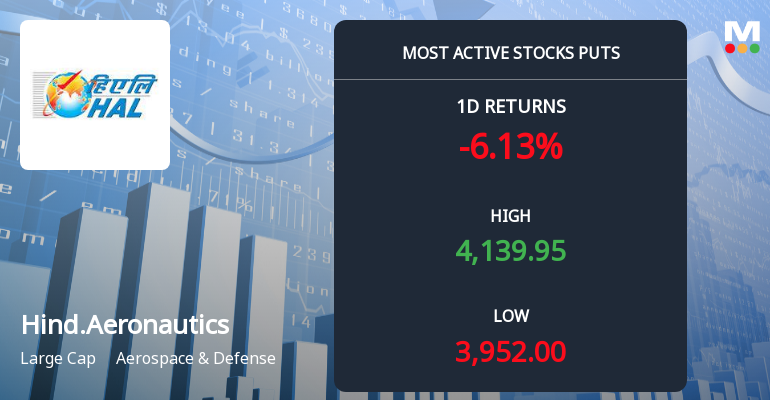 During the trading session on 04-Feb, HAL’s stock experienced heightened volatility, with an intraday price swing of 5.01%. The share price touched a low of ₹4,100.15, marking an 8.31% decline from previous levels. The weighted average price indicates that a larger volume of shares traded closer to this lower price point, signalling selling pressure throughout the day. This price behaviour suggests that investors were offloading shares amid uncertain market conditions, contributing to the stock’s underperformance relative to its sector peers.
