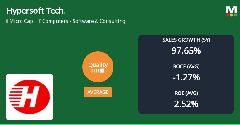 2026-02-03 10:14:03Hypersoft Technologies Ltd is rated 'Sell' by MarketsMOJO, with this rating last updated on 14 January 2026. However, the analysis and financial metrics discussed here reflect the company’s current position as of 03 February 2026, providing investors with the latest insights into the stock’s fundamentals, valuation, financial trends, and technical outlook.