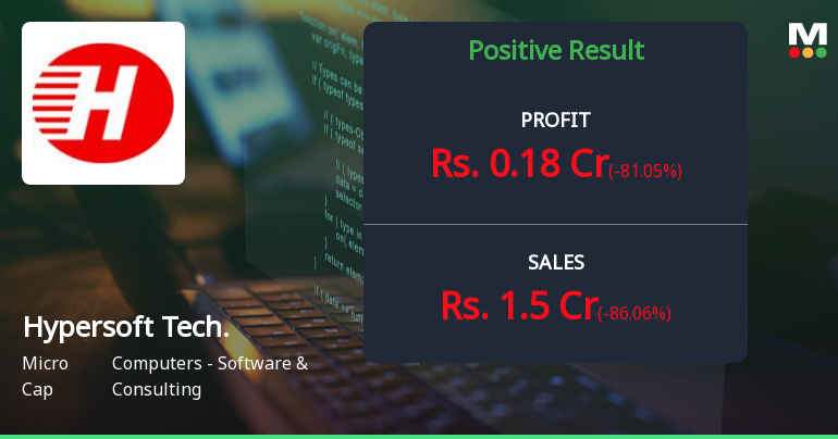 2026-02-13 23:56:39Hypersoft Technologies Ltd., a micro-cap software and IT consulting firm with a market capitalisation of ₹128.00 crores, reported deeply concerning Q3 FY26 results that exposed severe business volatility. Net profit for the quarter stood at ₹0.18 crores, plummeting 81.05% quarter-on-quarter from ₹0.95 crores in Q2 FY26, whilst revenues collapsed 86.06% sequentially to just ₹1.50 crores from ₹10.76 crores. Despite the alarming quarterly deterioration, the stock rallied 4.12% following the results announcement, trading at ₹84.00 on February 13, 2026.