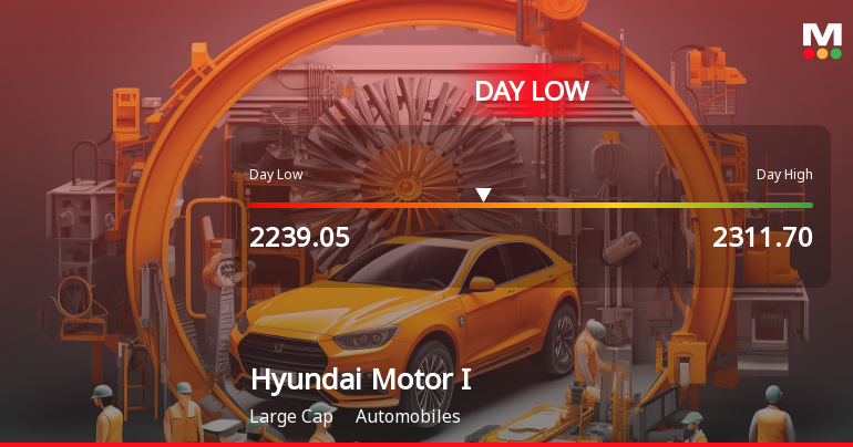 2026-01-27 09:34:38Hyundai Motor India Ltd experienced a notable decline today, touching an intraday low of Rs 2208.05 as the stock faced sustained selling pressure amid broader market weakness and sectoral underperformance.