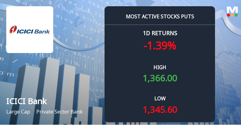 "description": "ICICI Bank Ltd., a leading private sector bank, has emerged as the most active stock in put options trading as the 30 December 2025 expiry approaches. The surge in put contracts at the 1350 strike price signals notable bearish positioning or hedging activity among market participants, reflecting cautious sentiment amid the bank’s recent price movements and sector dynamics."