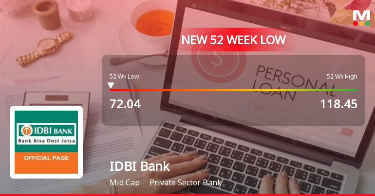 IDBI Bank Ltd. Stock Falls to 52-Week Low of Rs.71.7 Amid Market Downturn