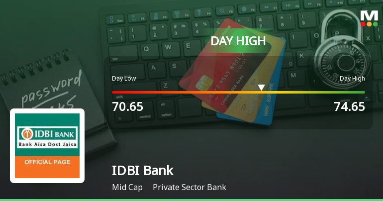 IDBI Bank Ltd. Surges 5.13% to Day's High of Rs 73.8 — Outperforms Sector by 2.08 Percentage Points