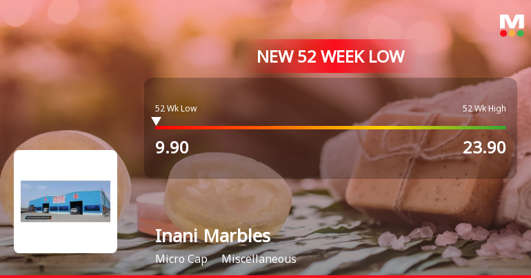 2026-03-10 15:38:30Inani Marbles & Industries Ltd has touched a new 52-week low of Rs.9.9 today, marking a significant decline in its stock price amid a sustained downward trend. The stock has underperformed its sector and benchmark indices, reflecting ongoing pressures on the company’s financial and market performance.