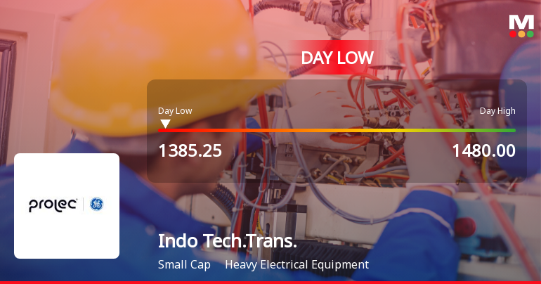2026-02-05 11:00:56Indo Tech Transformers Ltd experienced a notable decline today, hitting an intraday low of Rs 1,391 as the stock faced significant price pressure amid a broadly negative market environment. The share price fell by 7.55%, underperforming its sector and the broader Sensex index.