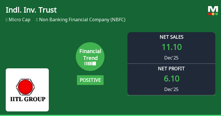 2026-02-05 09:46:56Industrial Investment Trust Ltd. (IITL), a micro-cap non-banking financial company with a market capitalisation of ₹304.00 crores, reported consolidated net profit of ₹6.10 crores for Q3 FY26 (October-December 2025), representing a dramatic reversal from the ₹3.29 crores loss recorded in Q2 FY26. However, the company's highly volatile quarterly performance pattern—swinging between profits and losses over recent quarters—raises serious questions about earnings sustainability and business model stability.