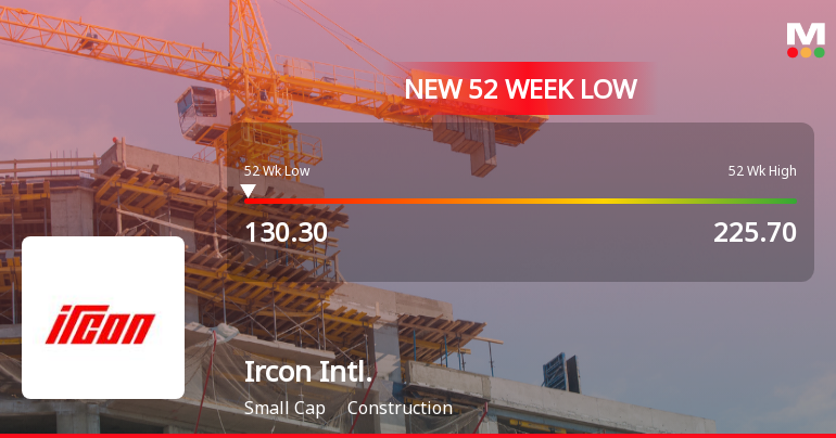 Ircon International Ltd Falls to 52-Week Low of Rs.130.3 Amid Continued Earnings Pressure