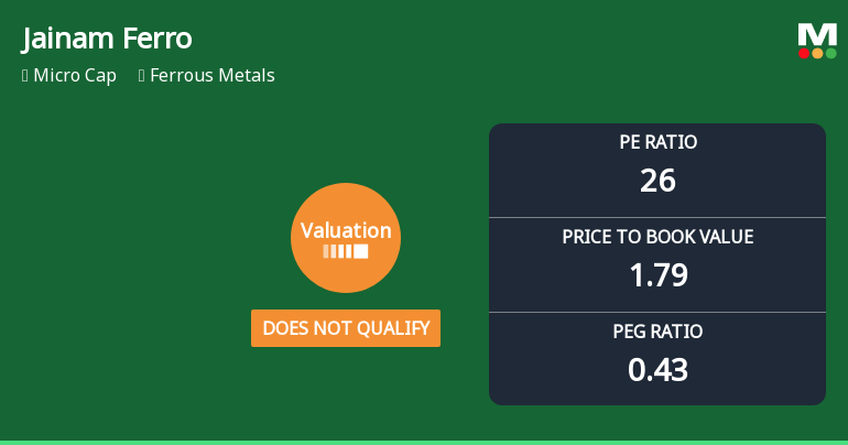 2026-01-02 08:04:24Jainam Ferro Alloys (I) Ltd has experienced a notable shift in its valuation parameters, moving from a 'very expensive' rating to one that currently 'does not qualify' under key valuation metrics. This change reflects evolving market perceptions and has significant implications for investors assessing the stock's price attractiveness relative to its historical levels and peer group within the ferrous metals sector.