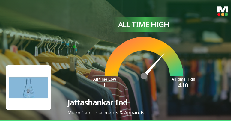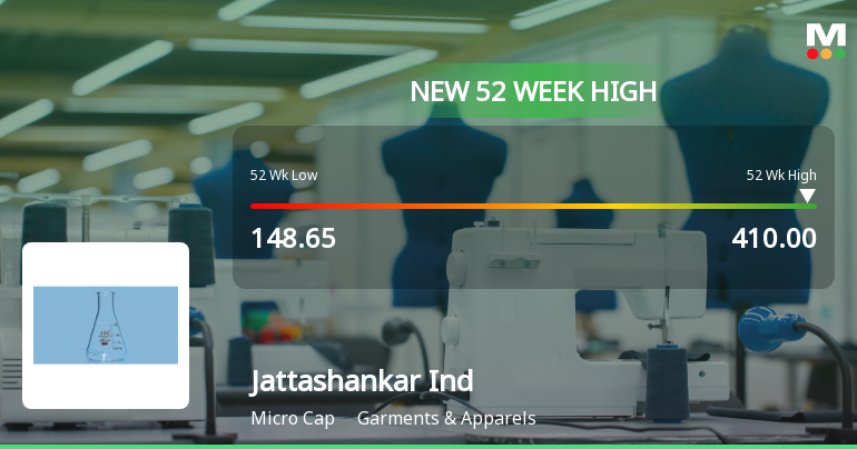 2026-02-01 10:41:02Jattashankar Industries Ltd, a key player in the Garments & Apparels sector, reached a significant milestone today by hitting a new 52-week and all-time high of Rs.410. This achievement marks a continuation of the stock’s strong upward momentum, reflecting robust market performance over the past year.