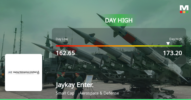 2026-02-03 15:31:26Jaykay Enterprises Ltd recorded a robust intraday performance on 3 Feb 2026, surging to a day’s high of Rs 173.2, marking a 7.21% increase from the previous close. The aerospace and defence company demonstrated notable trading momentum despite broader market fluctuations.