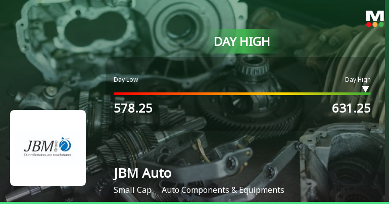 2026-04-01 09:31:55The Sensex advanced 2.66% on 1 Apr 2026, yet JBM Auto Ltd outpaced the broader market with an 11.5% gain, reaching an intraday high of Rs 552. This 9.43-percentage-point outperformance over the Auto Components & Equipments sector's 2.07% rise signals a distinctly stock-specific rally rather than a market-wide lift.
