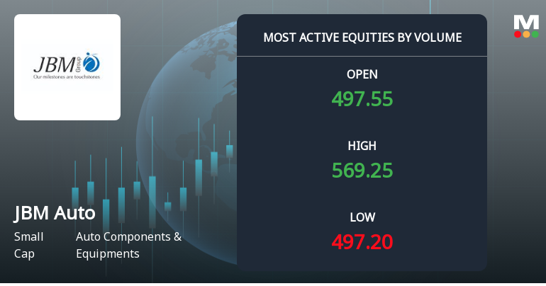 2026-03-18 10:10:58JBM Auto Ltd recorded a robust intraday performance on 18 Mar 2026, surging to a day’s high of Rs 548.25, marking an 11.37% increase. The stock outperformed its sector and broader market indices, reflecting strong trading momentum and positive price action during the session.