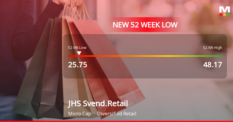 2025-12-08 10:22:18JHS Svendgaard Retail Ventures has reached a new 52-week low, closing at Rs.25.75, marking a significant price level for the diversified retail company amid a challenging market environment.