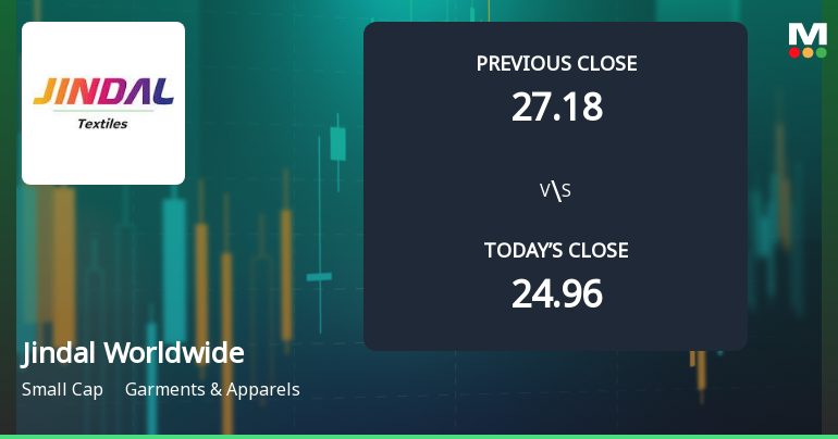 Jindal Worldwide Ltd Falls to 52-Week Low of Rs.23 Amid Continued Downtrend
