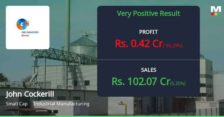 John Cockerill India Limited, a small-cap industrial manufacturing company with a market capitalisation of ₹2,499 crores, reported a dramatic collapse in profitability during Q3 FY26 despite posting its highest-ever quarterly revenue. The company's net profit plummeted 95.28% quarter-on-quarter to ₹0.42 crores from ₹8.92 crores in Q2 FY26, whilst revenue climbed 5.25% to ₹102.07 crores. The stock, trading at ₹5,010 as of February 27, has gained 82.15% over the past year but faces mounting concerns over margin sustainability and an extraordinarily stretched valuation of 293 times trailing earnings.