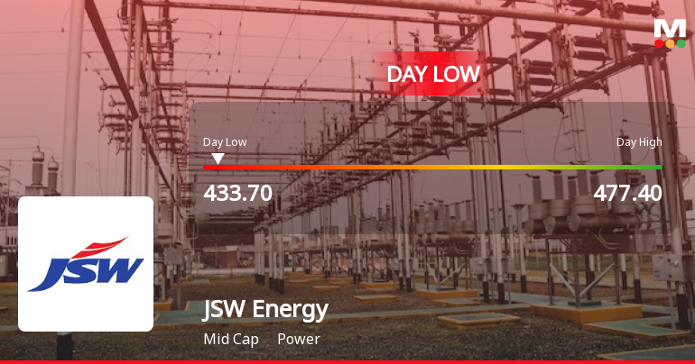 2026-01-27 09:34:05JSW Energy Ltd experienced a significant intraday decline on 27 Jan 2026, touching a low of Rs 433.7, reflecting intense price pressure amid broader market weakness and sector underperformance.