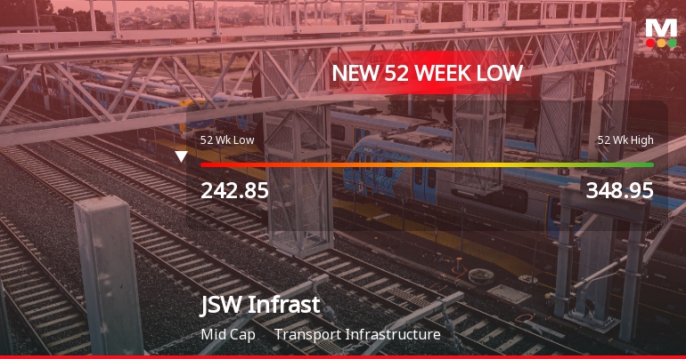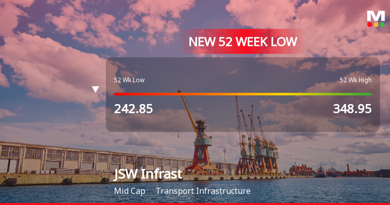 For the second consecutive session, JSW Infrastructure Ltd has seen its share price decline, hitting a fresh 52-week low of Rs 239.45 on 30 Mar 2026. This latest drop extends the stock’s recent losing streak, with a cumulative fall of 6.31% over two days, underperforming its sector by 1.2% today alone.