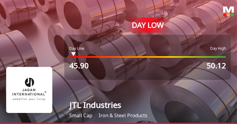 Shares of JTL Industries Ltd declined sharply on 27 Mar 2026, hitting an intraday low of Rs 46.03, marking a 7.05% drop as the stock underperformed its sector and broader market amid prevailing negative sentiment.