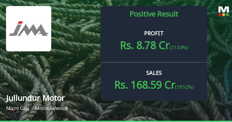 2026-02-12 21:51:03Jullundur Motor Agency (Delhi) Ltd., a micro-cap automobile spares and components distributor with a market capitalisation of ₹183.00 crores, reported a consolidated net profit of ₹8.78 crores for Q3 FY26, marking a robust 49.83% sequential increase from ₹5.86 crores in Q2 FY26 and a 31.04% year-on-year growth from ₹6.70 crores in Q3 FY25. The stock has declined 6.91% over the past year, underperforming the Sensex's 9.85% gain by 16.76 percentage points, and currently trades at ₹79.63, down 28.90% from its 52-week high of ₹111.99.