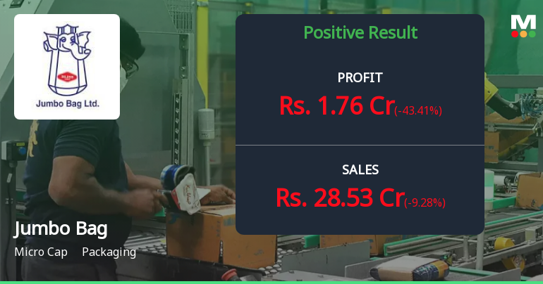 Jumbo Bag Ltd's stock opened with a gap up of 7.69% and reached an intraday high of ₹70.7, marking a 19% surge from its previous close. The stock has demonstrated strong momentum, gaining for three consecutive days and delivering a 15.34% return over this period. This outperformance is notable given that the packaging sector, in which Jumbo Bag operates, declined by 2.16% on the same day. The stock also outpaced its sector by 9.3% today, highlighting investor preference for Jumbo Bag amid sector-wide weakness.