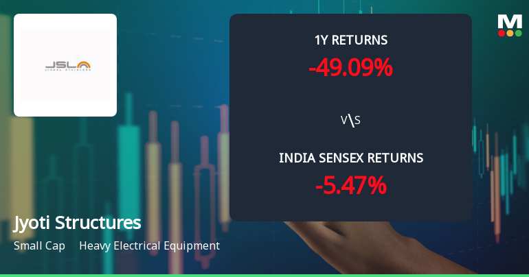 2026-03-20 10:10:33Jyoti Structures Ltd is rated 'Sell' by MarketsMOJO, with this rating last updated on 23 January 2026. However, the analysis and financial metrics discussed here reflect the stock's current position as of 20 March 2026, providing investors with the latest insights into the company's performance and outlook.
