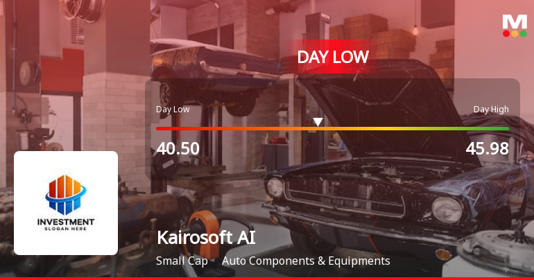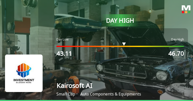 Kairosoft AI Solutions recorded a robust intraday performance on 22 Dec 2025, surging to an intraday high of Rs 45.58, reflecting a gain of 8.81% from the previous close. The stock demonstrated notable volatility and trading activity within the Auto Components & Equipments sector, outperforming its peers and the broader market indices.