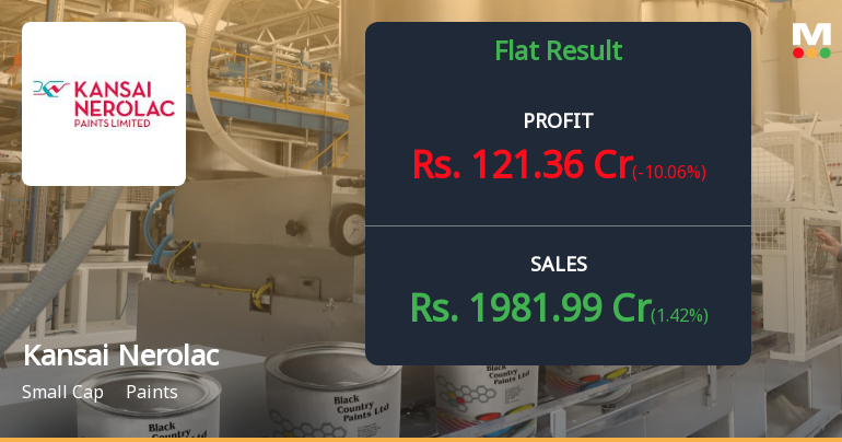 2026-02-04 09:19:09Kansai Nerolac Paints Ltd., one of India's leading coatings manufacturers with 74.98% promoter holding by Kansai Paint Company Limited of Japan, reported consolidated net profit of ₹121.36 crores for Q3 FY26, marking a sharp 82.18% decline year-on-year and a 10.06% sequential contraction. The results underscore persistent margin pressures and operational challenges that have plagued the paints sector, with the stock declining 2.30% to ₹222.90 on the announcement day, continuing its downward trajectory that has seen it lose 10.03% over the past year.