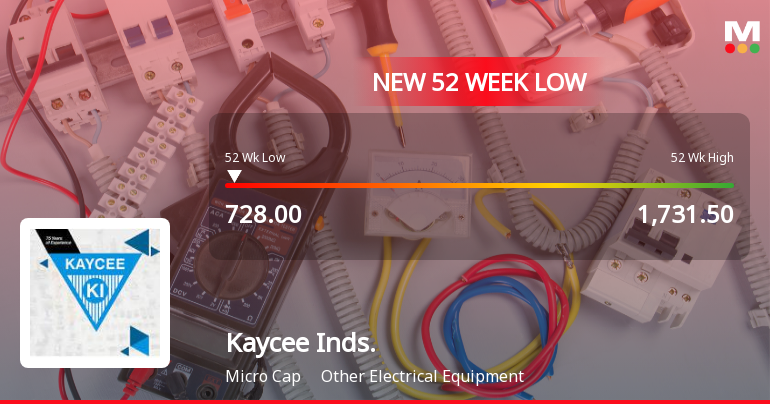 2026-01-20 10:24:53Kaycee Industries Ltd, a player in the Other Electrical Equipment sector, has reached a new 52-week low of Rs.720, marking a significant decline amid a broader market environment that has seen mixed performance. The stock’s recent trajectory reflects a series of factors impacting its valuation and market standing.