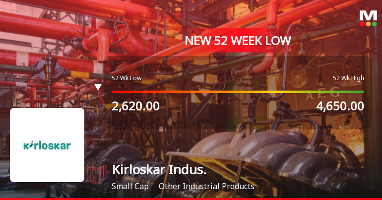 Kirloskar Industries Ltd has reached a new 52-week low of Rs.2620 today, marking a significant decline in its stock price amid a challenging market environment. The stock’s performance over the past year has been notably weaker than the broader market, reflecting a combination of financial and market factors.