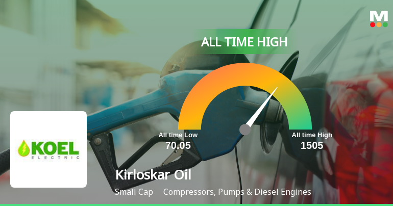 2026-03-06 09:33:27Kirloskar Oil Engines Ltd has reached a significant milestone by hitting an all-time high of Rs.1505 on 6 Mar 2026, reflecting a robust performance across multiple time frames and outperforming its sector and benchmark indices consistently.