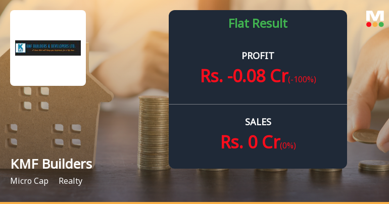 2026-02-16 12:18:11KMF Builders & Developers Ltd. reported a net loss of ₹0.08 crores for Q3 FY26 (Oct-Dec'25), marking the third consecutive quarter of zero revenue generation for the micro-cap real estate developer. With a market capitalisation of just ₹7.00 crores, the company's operational paralysis has intensified investor concerns, pushing the stock down 29.16% over the past three months to ₹6.00.