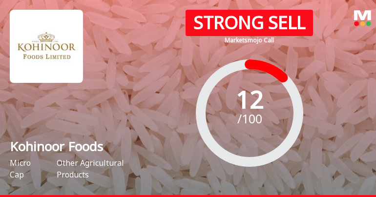 2026-03-27 10:10:15Kohinoor Foods Ltd is rated Strong Sell by MarketsMOJO, with this rating last updated on 30 December 2024. However, the analysis and financial metrics presented here reflect the company’s current position as of 27 March 2026, providing investors with an up-to-date view of the stock’s performance and fundamentals.