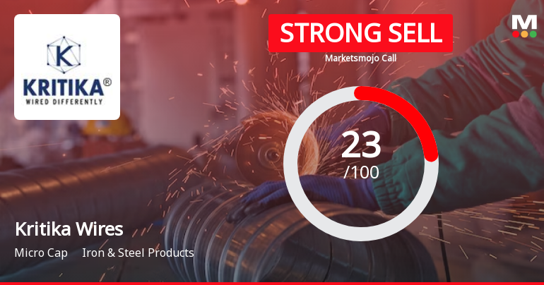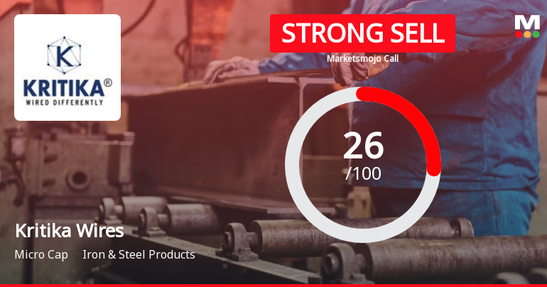 2026-02-08 10:10:41Kritika Wires Ltd is rated Strong Sell by MarketsMOJO, with this rating last updated on 07 July 2025. However, the analysis and financial metrics discussed here reflect the stock’s current position as of 08 February 2026, providing investors with an up-to-date view of the company’s fundamentals, valuation, financial trends, and technical outlook.